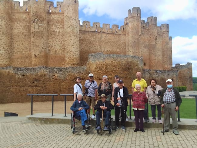 A unos kilómetros de distancia, en Valdelafuente, León, otro grupo, integrado, en este caso, por una docena de personas iniciaba una ruta cultural y gastronómica entre el Esla y Los Oteros explorando lugares emblemáticos, rememorando experiencias y creando nuevos recuerdos. Visitaron el impresionante castillo de Valencia de Don Juan, donde Eugenia, una de las residentes, maestra y amante de la historia, hizo de guía. Además, pudieron recorrer varias bodegas excavadas y seguir las fascinantes explicaciones de Jacoba, una residente oriunda del lugar. Conocieron la quesería artesana Praizal en Jabares de los Oteros, gracias a Pilar Blanco y su equipo, familiares de una de las gerocultoras de Tercera Actividad.