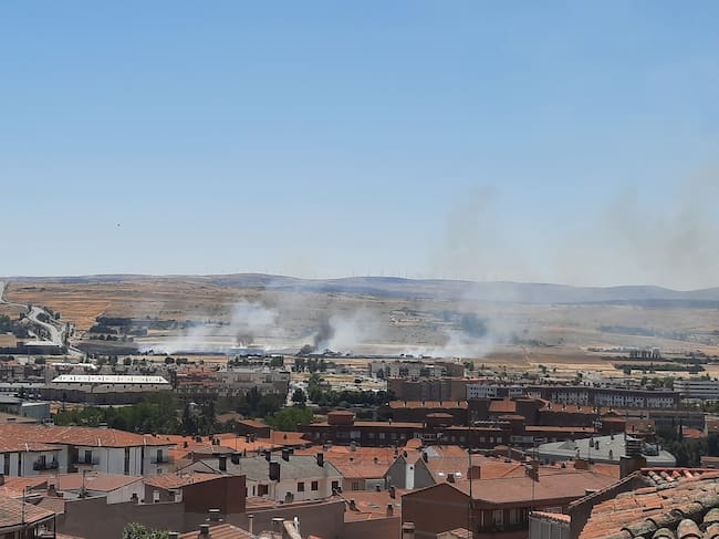 Nuevo susto por un incendio a las afueras de la capital. Las llamas se han iniciado en un terreno de pastos junto a la carretera Nacional 403, frente al antiguo archivo del Banco de Santander, cerca de la residencia canina, provocando un intenso humo. El fuego, cuya causa se investiga, ha afectado a pastos y a alguna pequeña construcción de las fincas calcinadas.