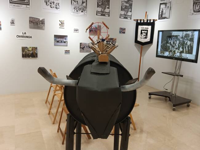 La Peña Tierra Aranda comparte las vivencias de su medio siglo de existencia con toda la sociedad con una variada muestra. La Casa de Cultura acoge esta colección de recuerdos que forma parte de la programación conmemorativa de estos cincuenta años y que incluye sus principales iconos. “Está expuesto el carro que utilizamos en la bajada de las peñas, con nuestro muñeco que va tirando agua para diversión de todos los que están bailando y solo nos faltaría el burro”, bromea su presidente, Héctor Díez Berzosa. “También entre los inventos emblemáticos o icónicos de nuestra peña está el toro de fuego, con su carcasa ya utilizada y todo el mundo puede ver el bien de cerca el mecanismo donde se coloca, un toro que utilizaremos este sábado como todos los años”, añade el presidente, comentando que aunque son tres tracas las que queman normalmente, este año serán cuatro, tirando la casa por la ventana ante onomástica tan señalada, insistiendo también en la importancia de que los que asistan “sigan las instrucciones de la organización, porque no deja de ser un espectáculo pirotécnico y aquí en Aranda ya sabemos, somos conscientes, de lo que significa”, concluye.