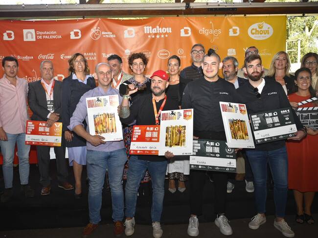 Ariel Munguía, de Flamma Valladolid ha recibido su premio de manos de presidenta de la Diputación Ángeles Armisén, Javier Echavarri, responsable comercial Horeca de la zona norte de Choví. Al cocinero le corresponden 500 euros en efectivo. Al cocinero de Bestial by Rossi la Loca el galardón se lo han entregado miembros de la Corporación Municipal del Ayuntamiento de Palencia, Victor Torres y Maribel Contreras, y Raúl Escudero, gerente de la Denominación de Origen Cigales y los representantes de Coca-Cola, Mahou y Heraclio Alfaro.