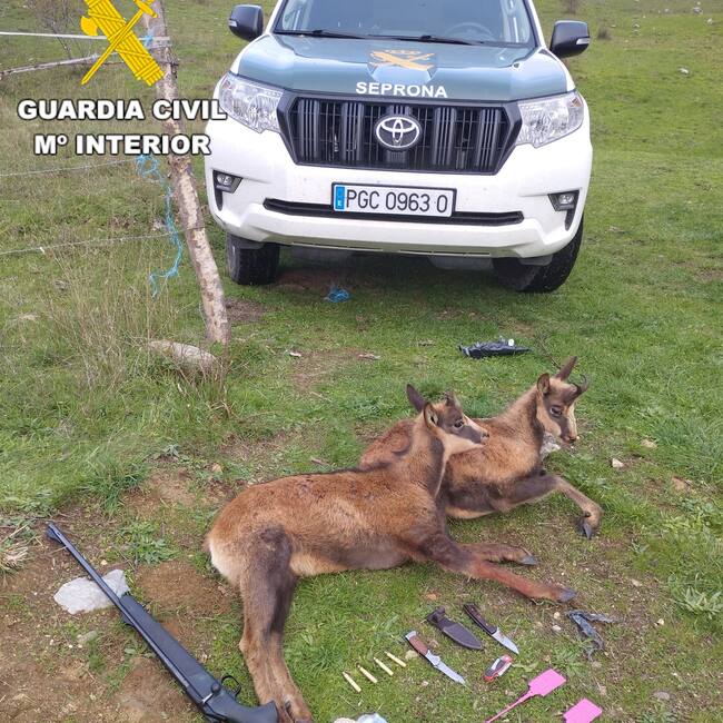Tres detenidos por caza furtiva en Babia y Luna. Agentes del Seprona sorprendieron a estas tres personas en posesión de dos rebecos muertos que supuestamente fueron abatidos en terrenos externos del acotado correspondiente. Les fue decomisado además un rifle de caza mayor, casquillos, un visor térmico, así como dos precintos de caza mayor. Se procedió a la tramitación de varias sanciones administrativas que les pueden acarrear multas entre los dos mil y diez mil euros.