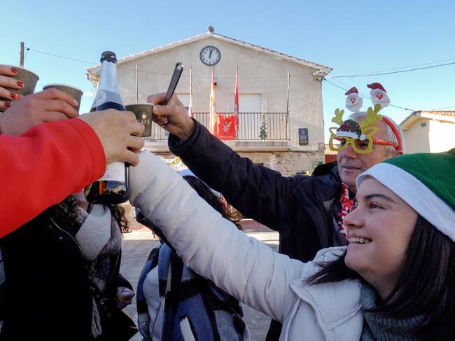En Villar de Corneja (Ávila), ya se han tomado las uvas y han dado la bienvenida al Año Nuevo aunque a 2024 todavía le quedan unas horas. A mediodía los siete vecinos que viven en el pueblo, sus familias y algunas personas que van a pasar estas fiestas alojados en sus casas rurales se han reunido en la plaza, junto al Ayuntamiento, y se han comido las tradicionales doce uvas para entrar con buen pie en 2025.