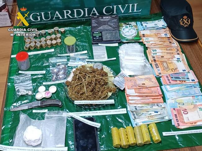 Al realizar el registro del bar, los agentes localizaron tras el mostrador sustancias estupefacientes tales como cocaína, hachís, marihuana, MDMA y varias pastillas de azules. También encontraron una báscula de precisión y una gran cantidad de dinero que, entre billetes y monedas, sumaban aproximadamente 5.000€.