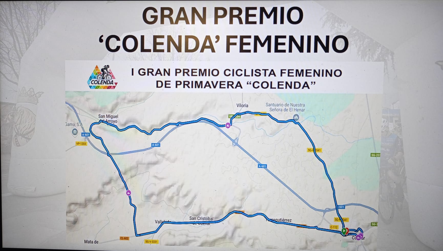 Una de las novedades de este año es la celebración del I Gran Premio Ciclista Femenino ‘Colenda’ que se celebrará el domingo 25 de mayo por la mañana con participación femenina desde categorías cadete a élite. “El recorrido será de 35 kilómetros y las junior y master darán dos vueltas al circuito y las cadetes una”, explicaba Magdaleno, afirmando que “es la prueba que le faltaba a Cuéllar. Si queremos tener muchas Marina Muñoz.” La prueba saldrá de Cuéllar pasa continuar por Torregutierrez, San Cristóbal de Cuéllar, Vallelado una subida muy dura hasta San Miguel del Arroyo, siguiendo hasta Viloria, el Santuario de El Henar y llegada a Cuéllar.