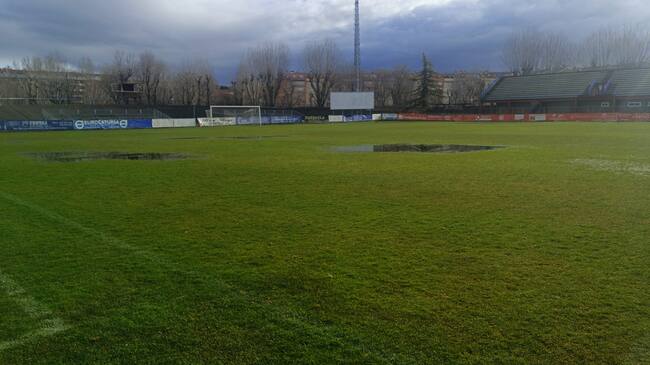 El césped del Adolfo Suárez se encontraba todavía con gran cantidad de agua, en la mañana del sábado / Real Ávila