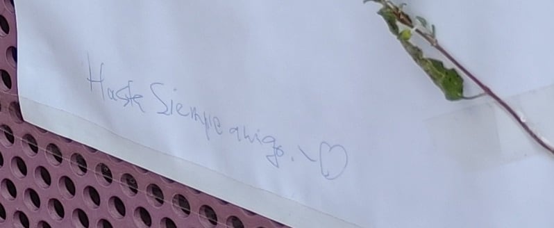 Un folio con el apodo de "Cacha" y un "hasta siempre amigo", recuerdan hoy a Manuel Cachafeiro en el respaldo del banco en el que ayer fallecía a los 57 años, una muerte repentina que le sobrevino a pocos metros de la sede de la redacción en la que trabajó durante los últimos cinco años.