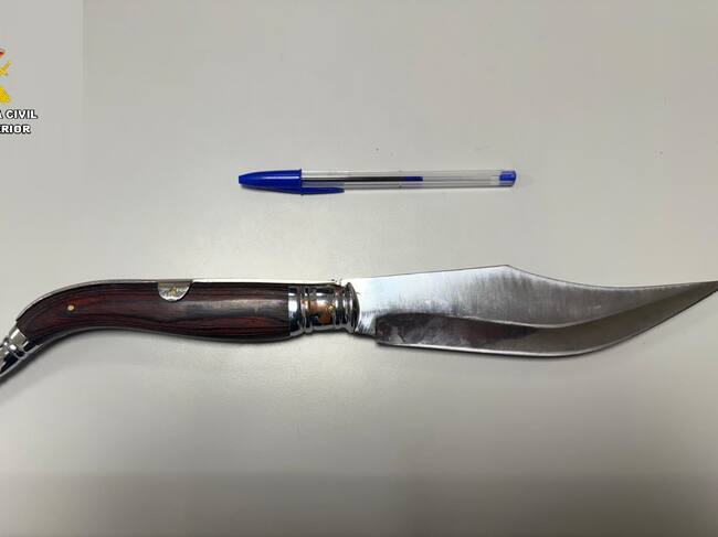 A la llegada de una patrulla de la Guardia Civil, los agentes localizaron rápidamente a esta persona, quien les mostró una navaja de grandes dimensiones que fue aprehendida por los guardias actuantes.
