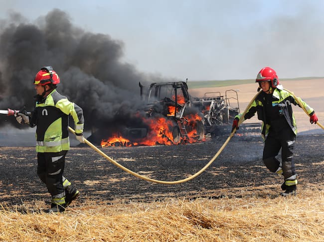 El incendio de una empacadora y un tractor ocasionó un fuego que calcinó varias hectáreas de una tierra cosechada, así como gran número de pacas de paja en la localidad palentina de Lantadilla, según la información a la que tuvo acceso la Agencia Ical.