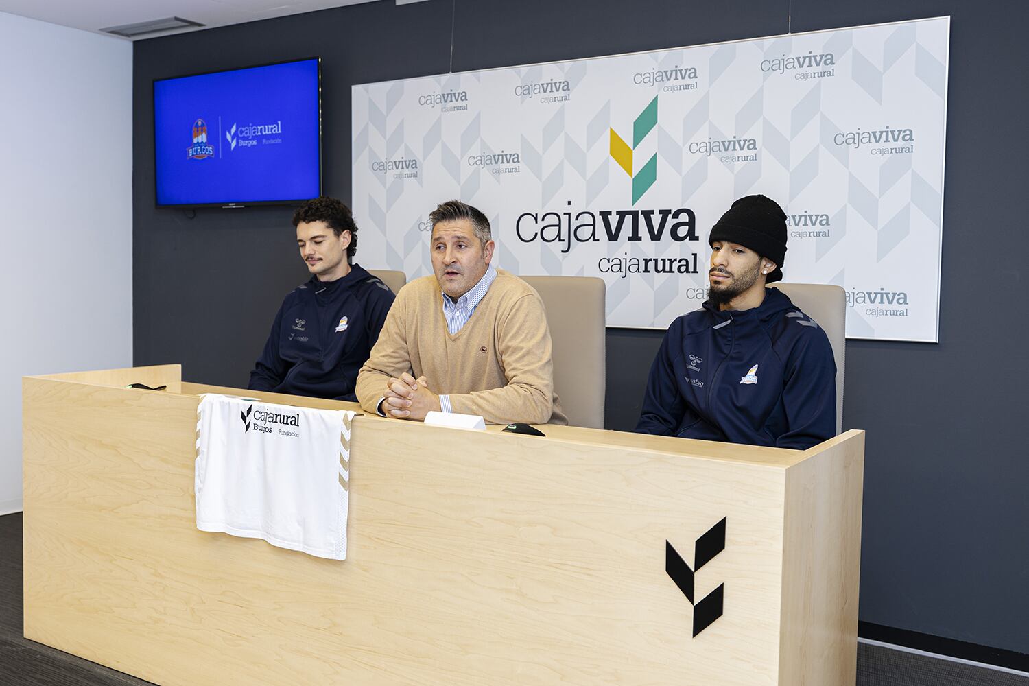 El San Pablo Burgos ha acudido este martes a la sede de Fundación Caja Rural en Burgos para formalizar la presentación ante los medios de comunicación de dos de sus incorporaciones en este verano: Jhivvan Jackson y Juan Rubio. Además, la comparecencia ha servido de marco para presentar y firmar la renovación del convenio de patrocinio entre ambas entidades.