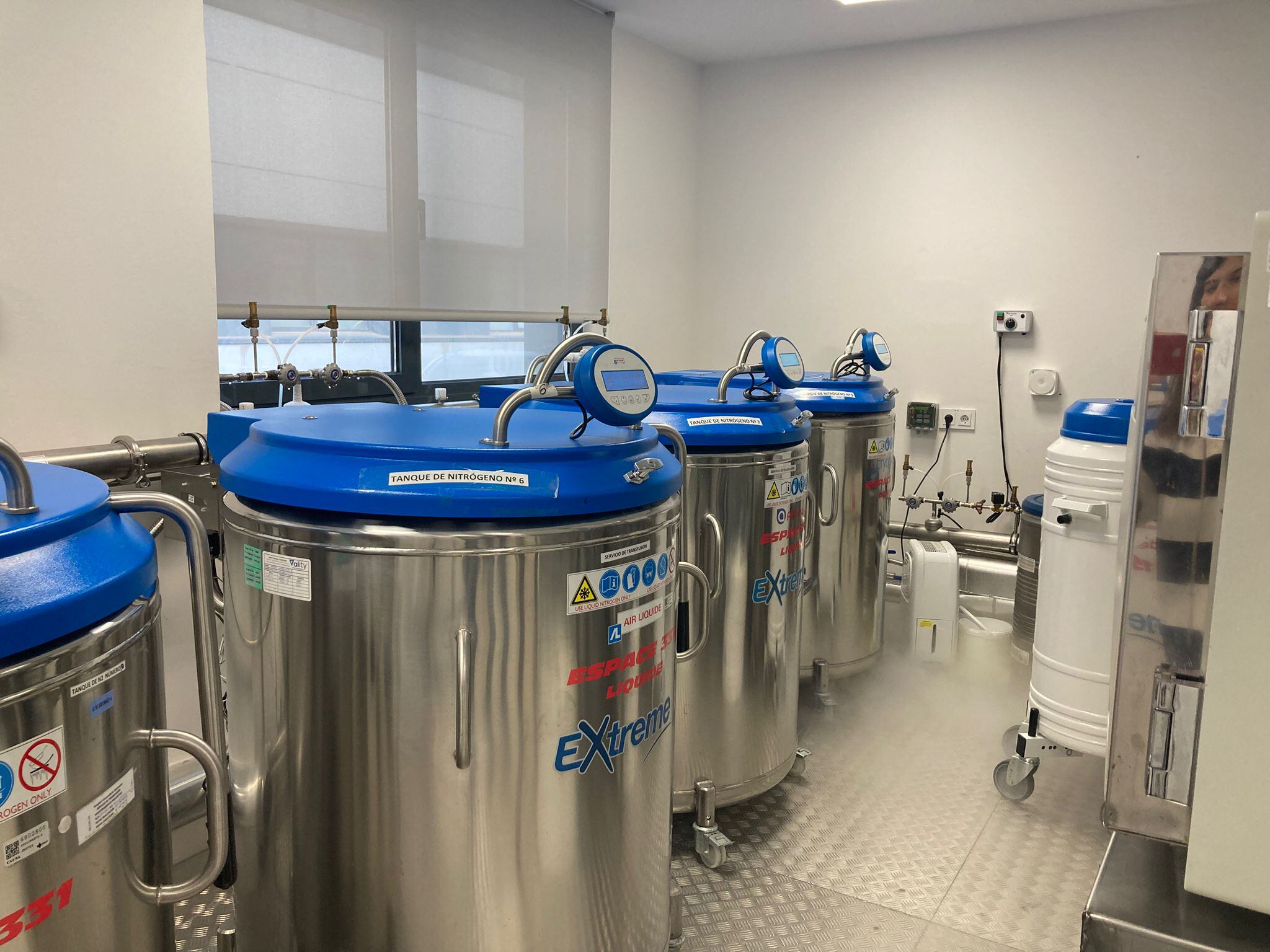 Además, accedimos a la sala de tanques, donde se almacenan componentes sanguíneos en nitrógeno líquido a -196ºC. Gracias a esta tecnología, pueden conservarse hasta ocho años, asegurando disponibilidad para tratamientos futuros.