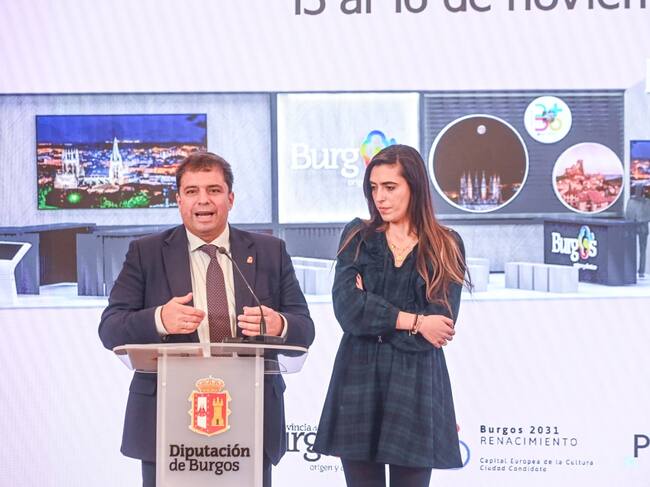 El presidente de Sodebur, Carlos Gallo y Andrea Ballesteros, presidenta de ProBur, presentan el programa de Burgos en FITUR 2025 / Diputación Burgos