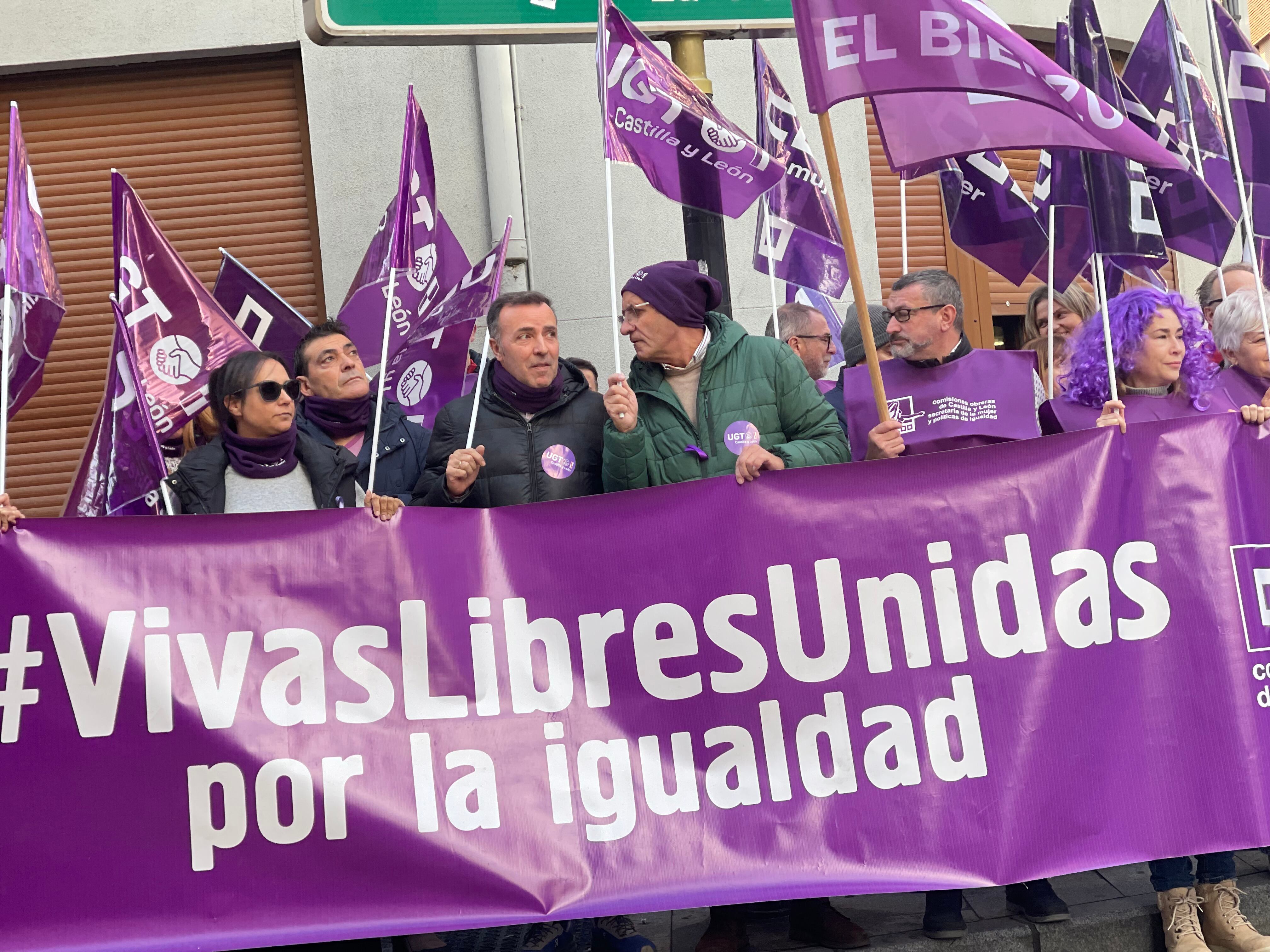 "Vivas, Libres, Unidas por la Igualdad", es el lema de la pancarta que ha presidido la concentración en la que las dos centrales sindicales mayoritarias en el Bierzo han ido de la mano en este 25N en el que han renovado su compromiso con la lucha contra la violencia hacia las mujeres, una lacra social que según CCOO ha triplicado las denuncias en este año.