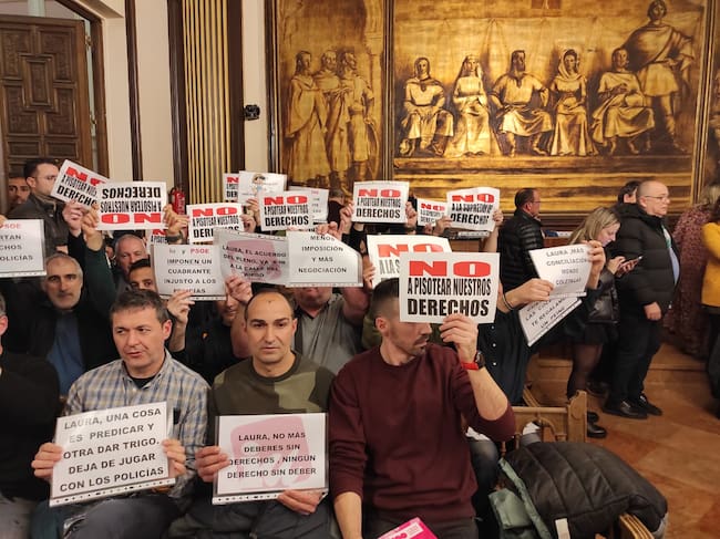Policías locales de Zamora fuera de servicio protestan en el Pleno Municipal por el nuevo turno de horarios