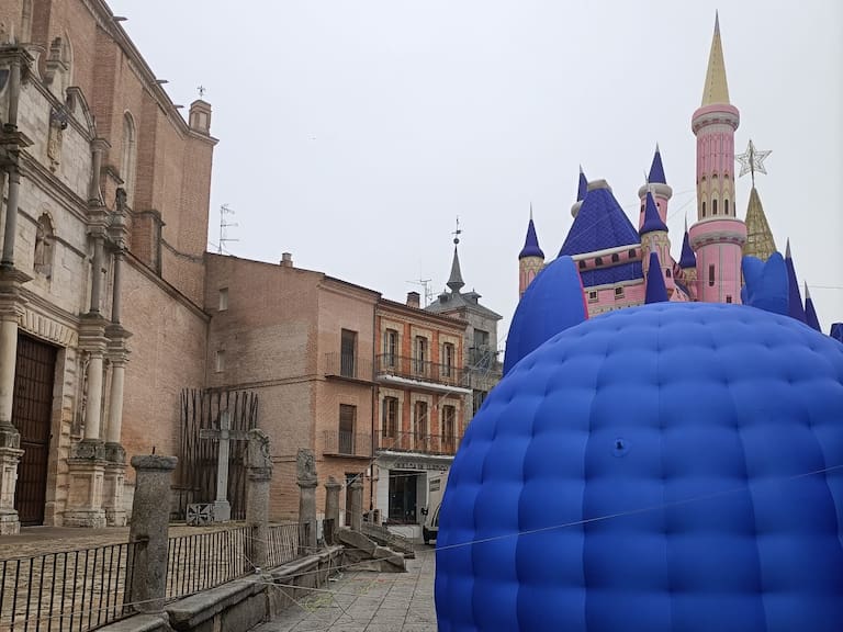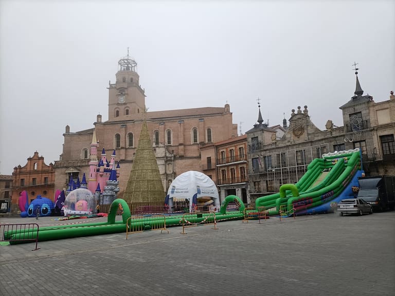 Hasta el último día del año llega la preocupación por el patrimonio de la provincia; en Medina del Campo les ha parecido una idea brillante anclar algunos de los hinchables instalados en la plaza Mayor a las columnas de la Colegiata, un templo del siglo XVI declarado Bien de Interés Cultural en 1931.