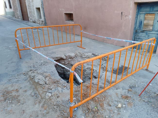 Socavón de la avería ocurrida en septiembre en la calle Rogativa de Cuéllar / Radio Cuéllar