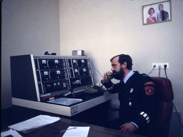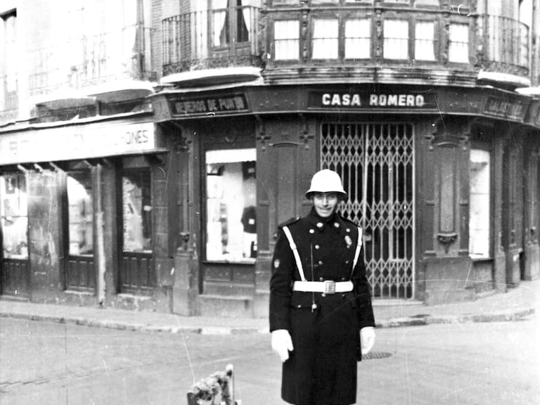 También podremos ver cómo eran los vehículos con los que patrullaban. La incorporación del primer radar móvil, los perros de la unidad canina que, al igual que la equina, desapareció. Las antiguas dependencias, el cuartel que ocupaba el espacio en el que hoy se levanta la sede de la Federación Regional de Municipios y Provincias en la Avenida de Salamanca. Incluso una imagen del bar en el que, como no somos estadounidenses, uno imagina cafés y churros, en vez de dónuts.