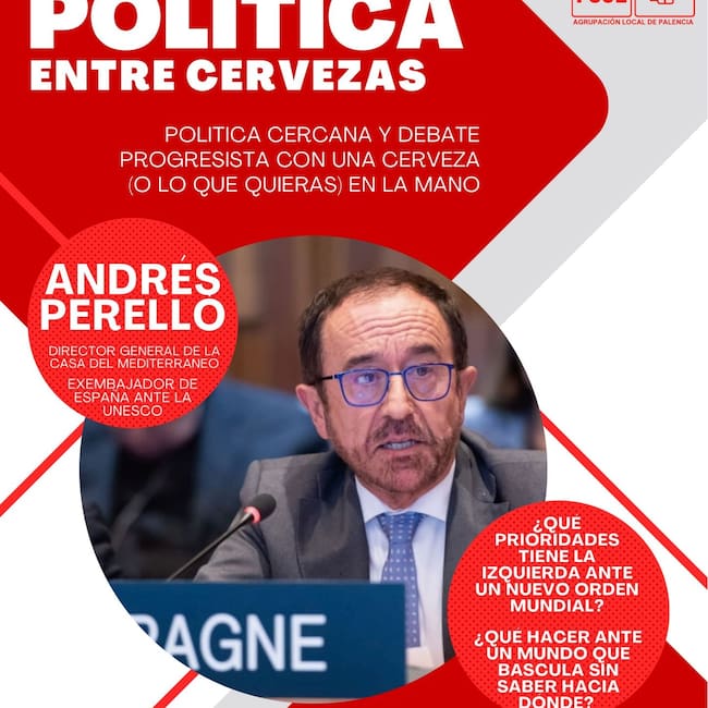La Agrupación Local del PSOE de Palencia organiza este lunes 26 de enero, a las 19:00 horas, en el Bar DANA (C/ Rizarzuela, 20) un encuentro bajo el título Política entre cervezas, una iniciativa que apuesta por un formato de debate político cercano, accesible y participativo.