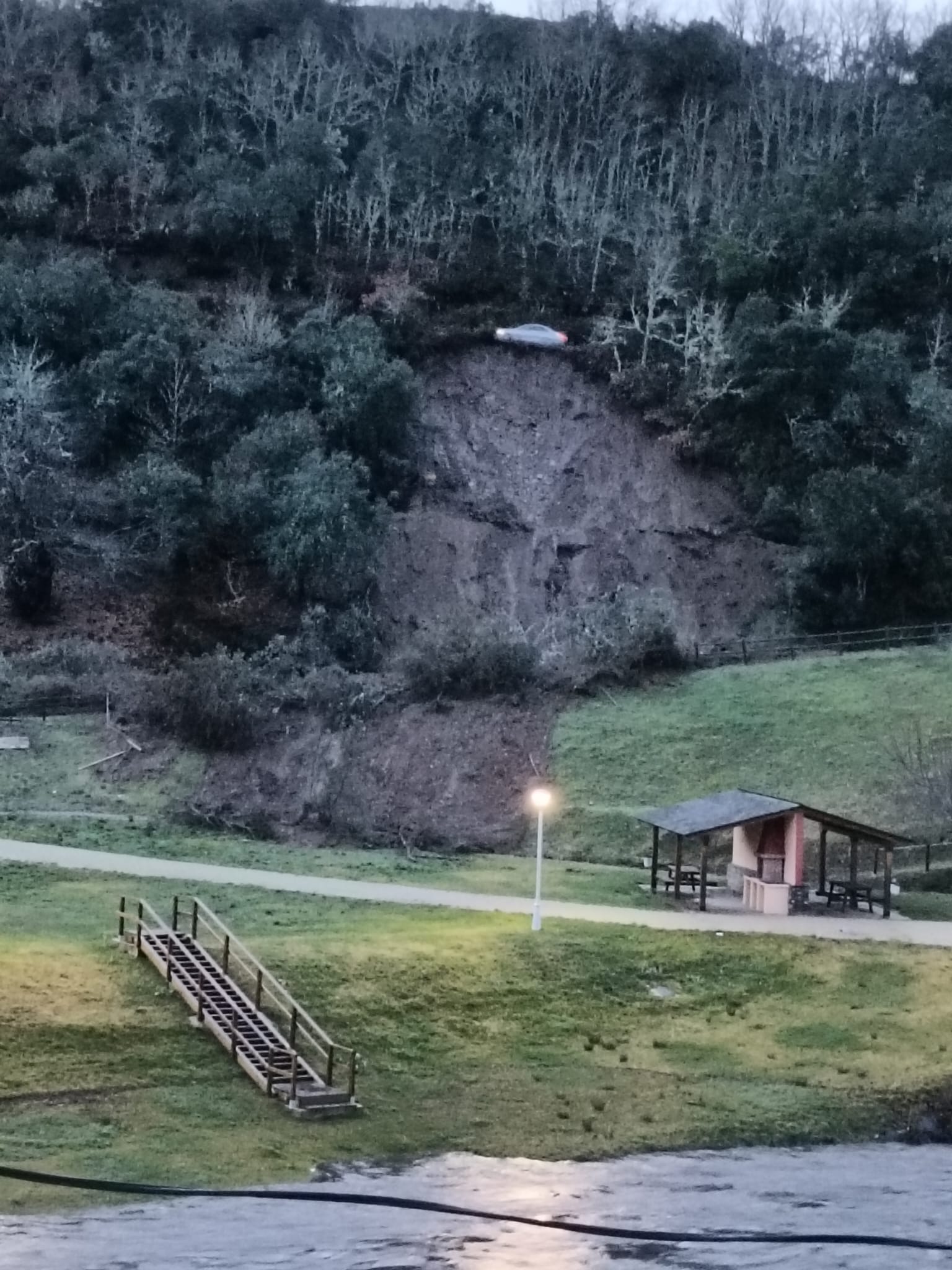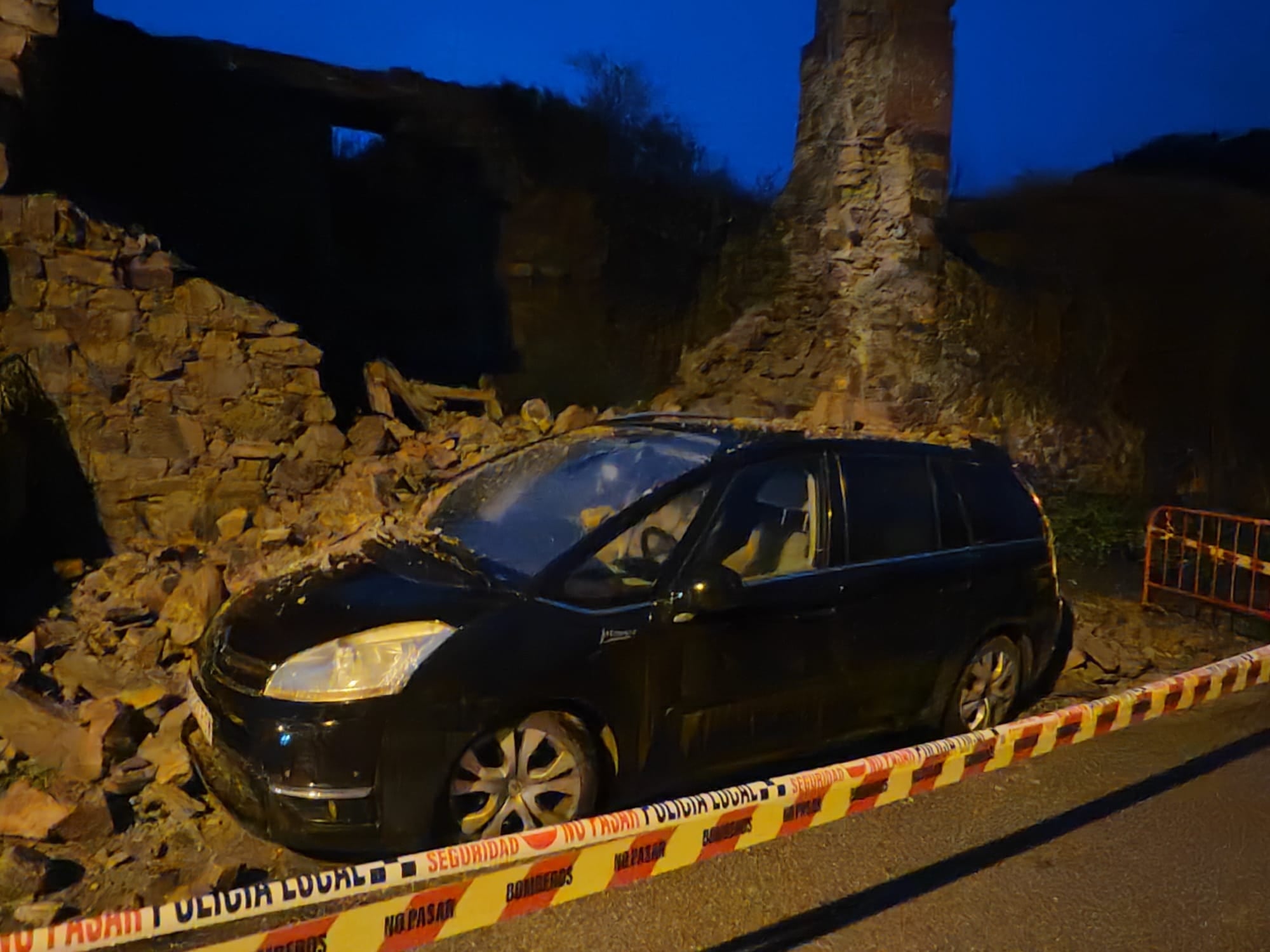 En la zona del puente Boeza, un muro de una casa en ruinas también se ha caído y ha provocado daños a un vehículo que estaba aparcado.