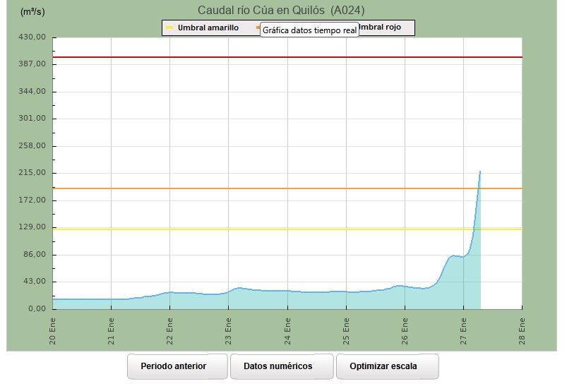 La alcaldesa de Cacabelos, Irene González, pide a sus convecinos que eviten el acceso a las zonas próximas al río, que no entren en los accesos fluviales ni en sendas peatonales situadas en zonas potencialmente inundables. La alerta de nivel naranja la establece la Confederación Miño-Sil a la altura de Quilós.