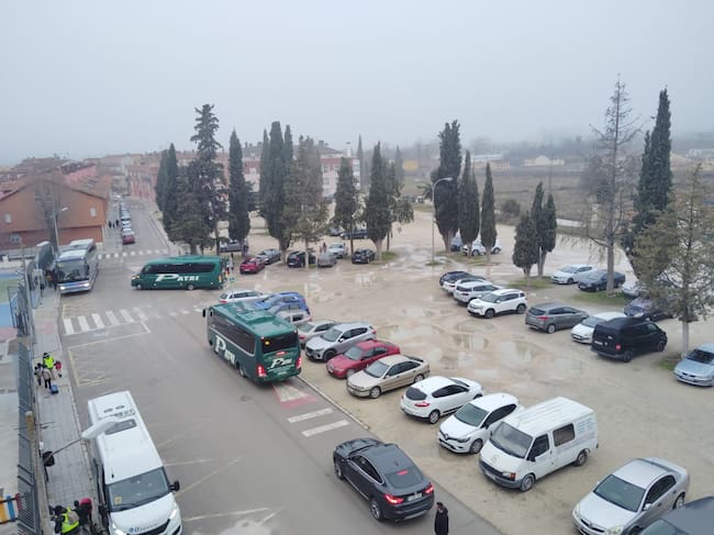 Entorno del colegio Simón de Colonia con los autobuses escolares a la hora de entrada