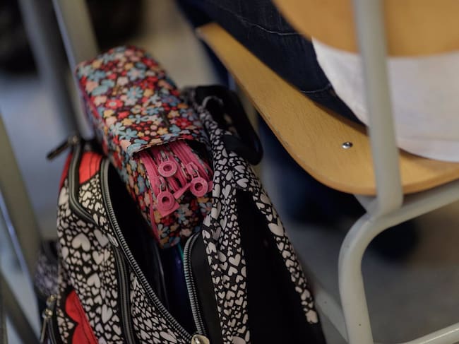 Mochila de un estudiante colgada de la silla junto a un pupitre / Europa Press