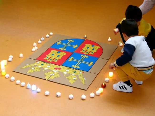 Una especial recreación donde los más pequeños han colocado las Candelas rodeando un escudo de Palencia y han podido disfrutar de bailes como el de Villamoronta o jotas como la Saldañesa o El Pingajo a cargo del Grupo de Danzas Aires Palentinos.
