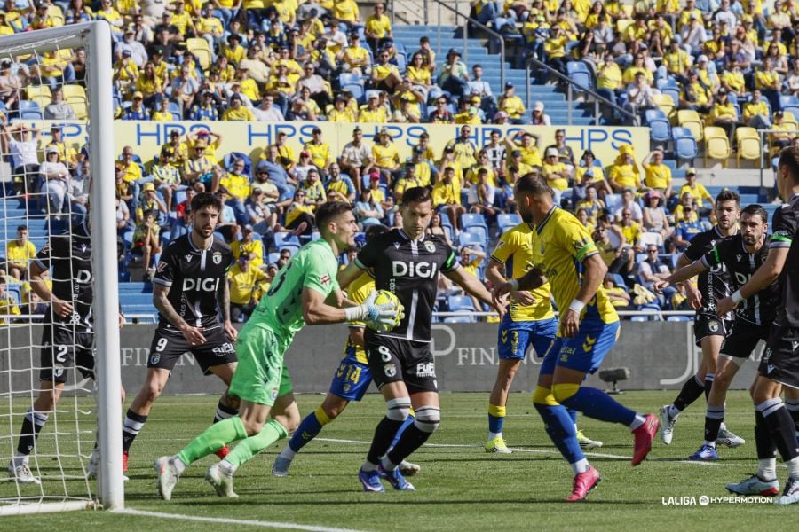 Sin embargo, todo cambiaría solo cinco minutos después, cuando realmente empezó a hacer daño al Burgos el dominio del equipo canario. Primero un centro al área visitante lo recogía Manu Fuster con todo a favor, pero su remate a bocajarro lo estrellaba en el poste, y a continuación llegaría la exhibición de Cantero para salvar a su equipo.