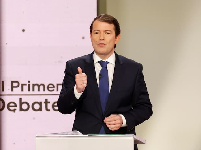 GRAF9488. VALLADOLID, 31/01/2022.- El candidato del Partido Popular a la presidencia de Castilla y León, Alfonso Fernández Mañueco, durante el debate electoral que se celebra hoy lunes en el Salón de Recepciones de las Cortes de Castilla y León, en Valladolid, con vistas a las elecciones autonómicas del próximo 13 de febrero. EFE/Javier Lizón / Javier Lizón (EFE)