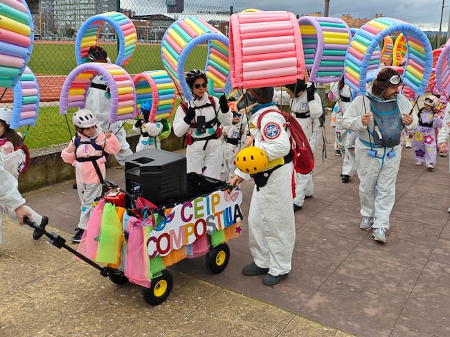 Fueron algunas de las propuestas de los 18 colegios que desafiaron el frío y la posibilidad de lluvia mientras desfilaban a buen paso desde el pabellón Lydia Valentín por las principales calles del centro de la ciudad para regresar de nuevo a las instalaciones deportivas.