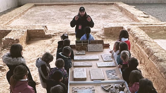 Se trata de actividades extraescolares para centros educativos de Educación Primaria, que incluyen la visita guiada a la villa romana del siglo IV, adaptada a la etapa curricular de los alumnos por el equipo de guías didácticos del yacimiento de la VRO, y un taller demostrativo de mosaico romano a cargo del mosaísta- restaurador de las villas romanas, Carlos Vela.