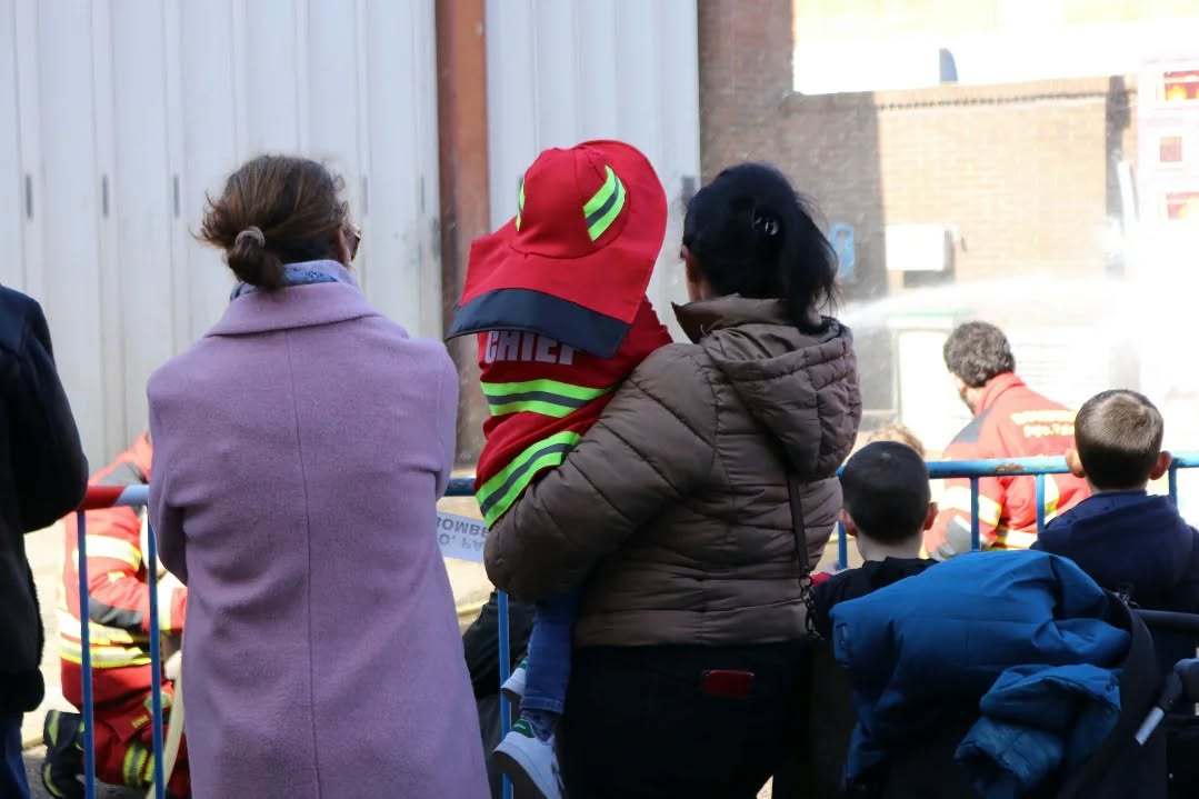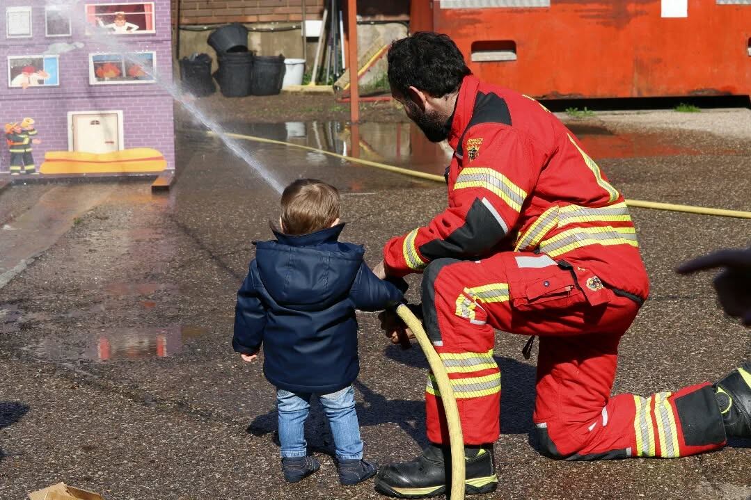 Los bomberos guiaron a cada familia con la paciencia de quien sabe que está mostrando mucho más que un oficio. Enseñaron cómo se preparan, cómo responden a una emergencia y cómo la prevención puede salvar vidas. Y mientras lo hacían, se escapaban sonrisas al ver a los niños observarlo todo con los ojos muy abiertos, como si cada explicación encendiera dentro de ellos una chispa nueva.