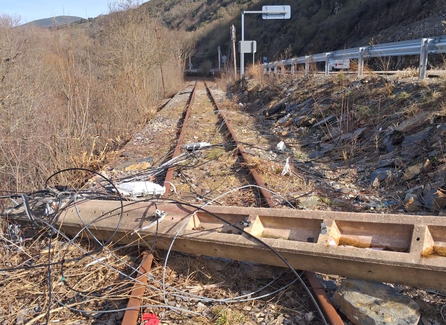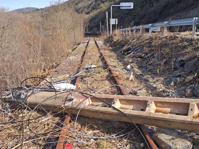 Lo más curioso es que el tendido de fibra que pasa por ese poste está en servicio, pero nadie se ha ocupado de devolverlo a su posición original desde que se vino abajo, en mayo de 2024, cuando se produjo el primer argayo de importancia a la altura del conocido como ‘puente romano’ de Páramo del Sil. La empresa concesionaria de la obra, Ferrocarril del Valle del Sil, al igual que los ayuntamientos y el consorcio Ponfeblino, han reiterado sus peticiones a la empresa de comunicaciones, pero por ahora, sin resultado, dice Manel Ramos, gerente de la concesionaria Ferrocarril del Valle del Sil, quien espera una próxima solución. De hecho, el comienzo de esa parte de la adecuación de las obras lleva esperando varias semanas.