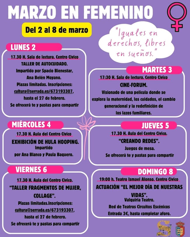 Serrada conmemora el 8M con su "Marzo en femenino" bajo el lema "Iguales en derechos, libres en sueños"