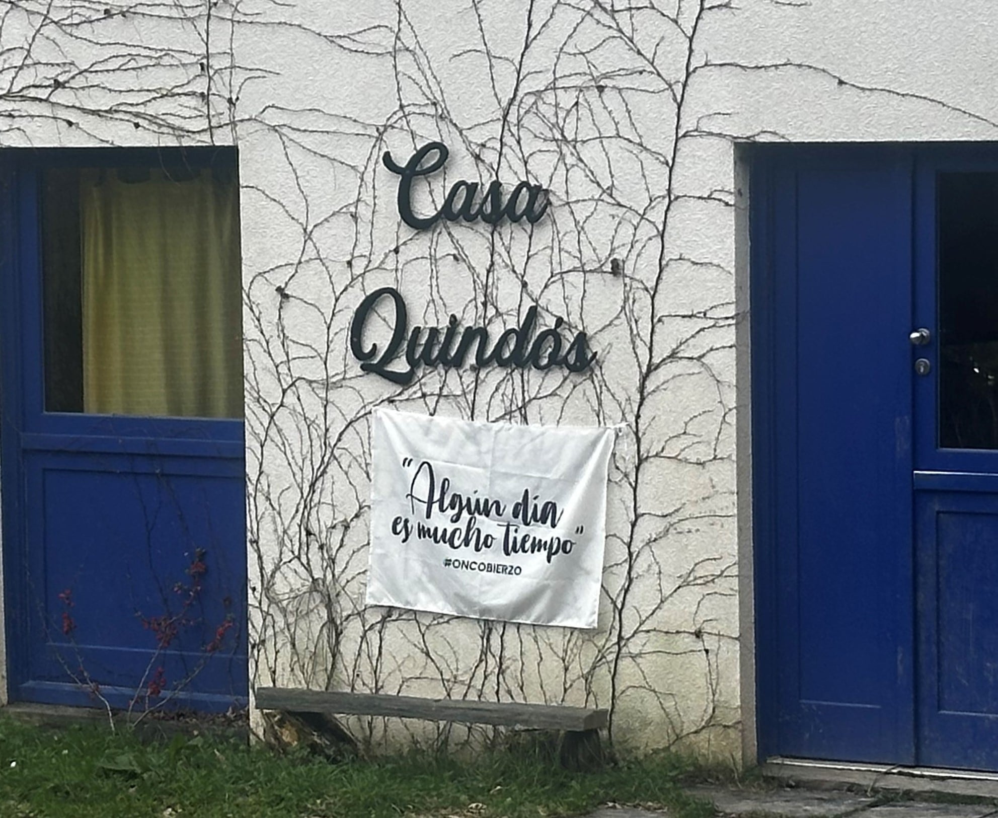 Pues bien, la fachada de la casa Quindós es también desde hace algún tiempo la ‘valla publicitaria’ del movimiento Oncobierzo, la asociación surgida en el Bierzo para reivindicar una sanidad digna. Su eslogan ‘Algún día es mucho tiempo’ da la bienvenida a todos aquellos que se acercan a esa singular instalación.