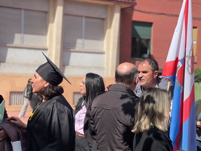 Togas y cascos. O lo que es lo mismo, abogados, procuradores, arquitectos y profesionales químicos, se han dado cita este mediodía a las puertas del INSS en Ponferrada para exigir que se desbloquee la tramitación del paso de sus pensiones al Régimen Especial de Autónomos de la Seguridad Social. El problema se ha resuelto para otros colectivos y reclaman un trato igualitario para que el Estado asuma las pensiones de los mutualistas alternativos.