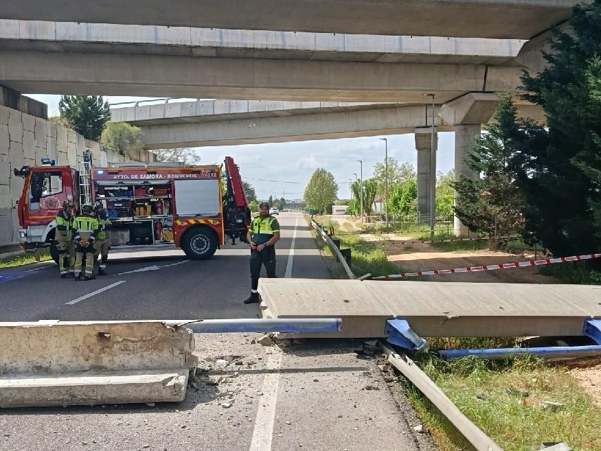 Cortadas la N 122 y parcialmente la A66 por la caída de una barrera de hormigón en Zamora