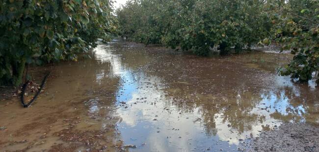 Camp d'avellaners inundat a Vilallonga del Camp (Tarragonès) el passat 16 d'agost. / Unió de Pagesos