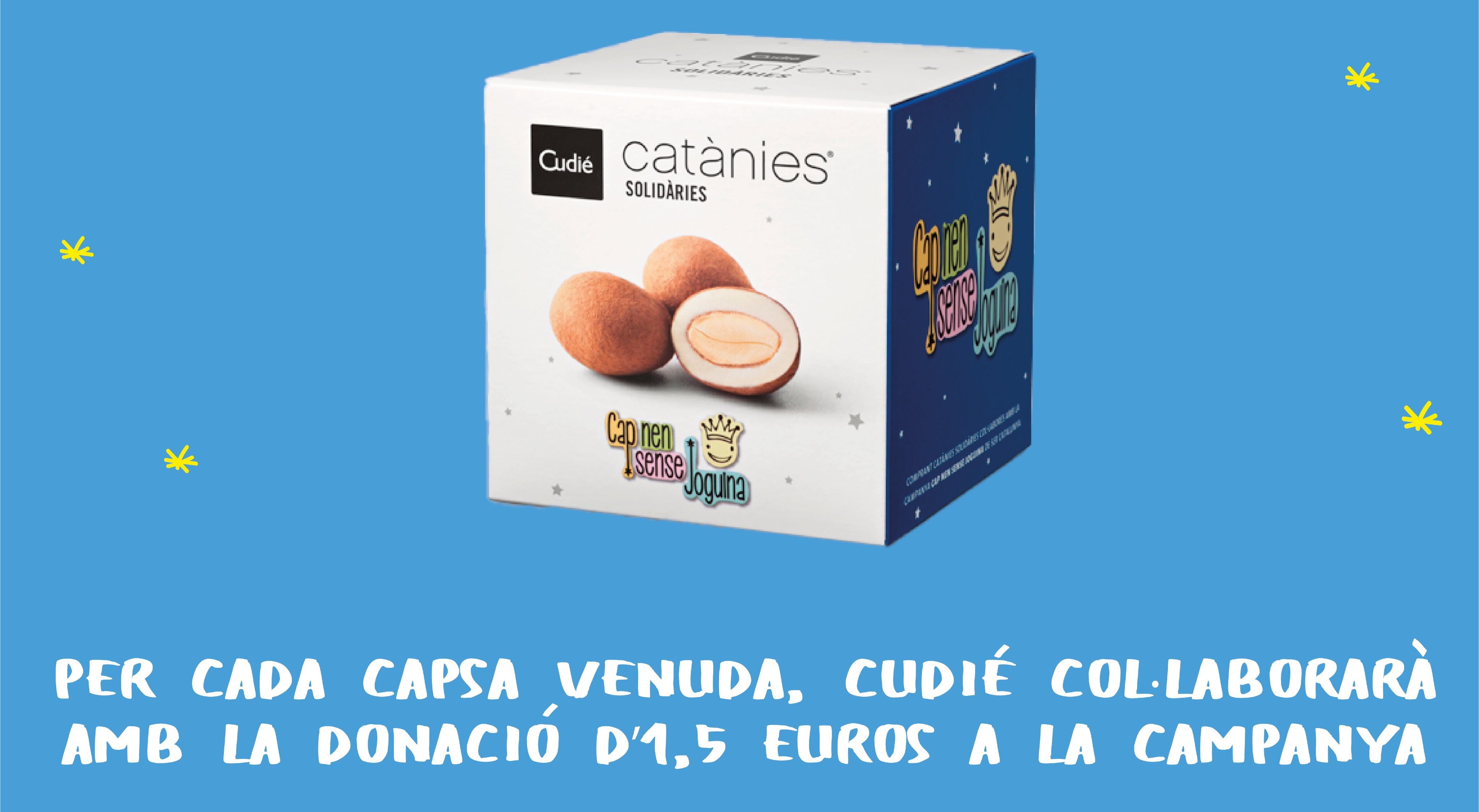 Un any més, i amb aquest ja en van quatre, Cudié col·labora amb el Cap Nen Sense Joguina a través d'una edició exclusiva del seu producte estrella: els deliciosos bombons d’ametlla marcona, praliné blanc i embolcall de cacau.