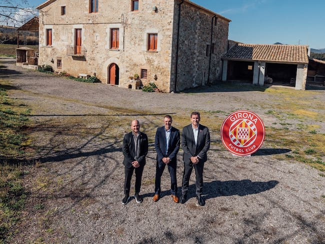 Pere Guardiola, Delfí Geli i Ferran Soriano a La Massana, que serà la nova seu del Girona FC. / Nil Solá