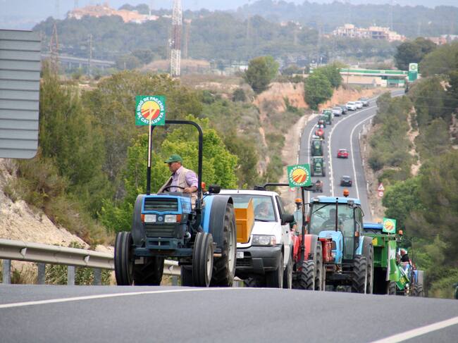 Pagesos conduint tractors per l'N-240 entre el Morell i Tarragona en la protesta organitzada per Unió de Pagesos per denunciar la situació de la pagesia / ACN