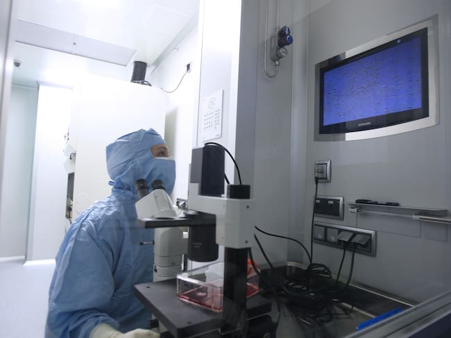 Un vial de células madre cultivadas en la sala blanca del ITRT