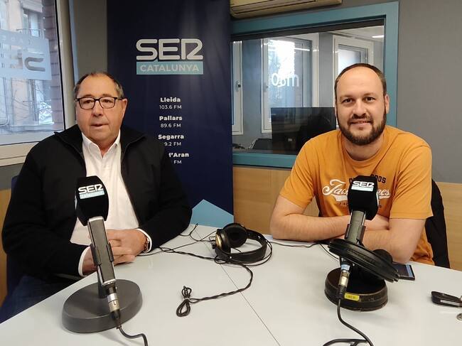 Celestí Vilà és l'alcalde d'Organyà i Marcel Pujol, el de Castellserà. Durant la gravació de la tertúlia de l'Aquí Lleida d'aquest dimarts, 9 de gener de 2024.