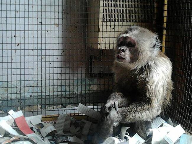 Liberan a un mono capuchino que vivía desde hace 35 años enjaulado en el piso de una mujer de 80 años en Barcelona