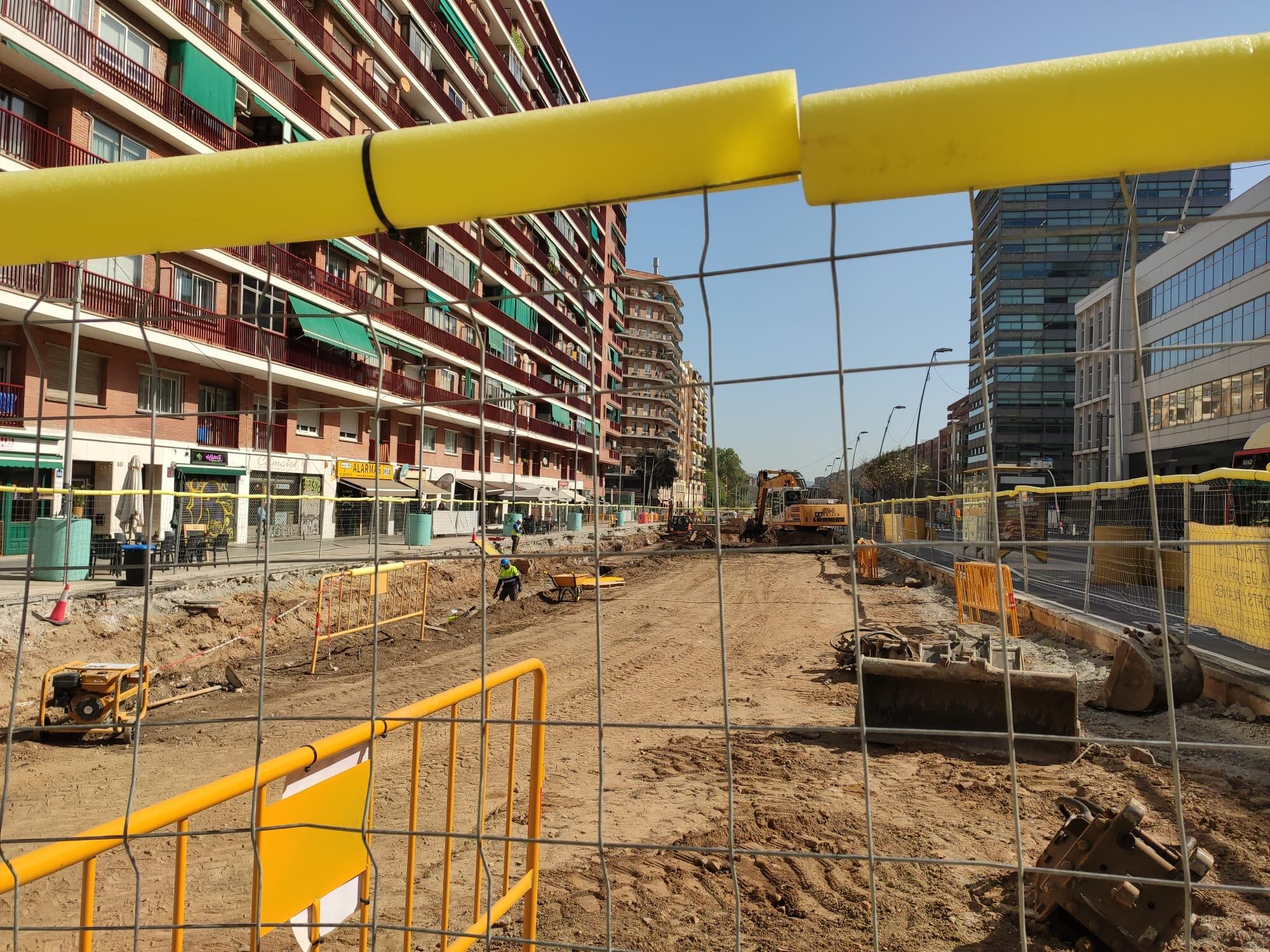 Glòries és una zona que ara mateix està en plena desconstrucció. Les obres fa temps que duren, des del 2014 que es va enderrocar l'anella viària pràcticament no han parat. Actualment, el que s'està fent es preveu ja definitiu. Per una banda, la zona verda que hi haurà davant la Clariana de les Glòries que afecta principalment l'accés i sortida del metro, que canvia setmanalment. I per l'altra, el passeig que ha d'ocupar la part superior del túnel, tota la Gran Via de les Corts Catalanes entre els carrers de Badajoz i Bilbao.