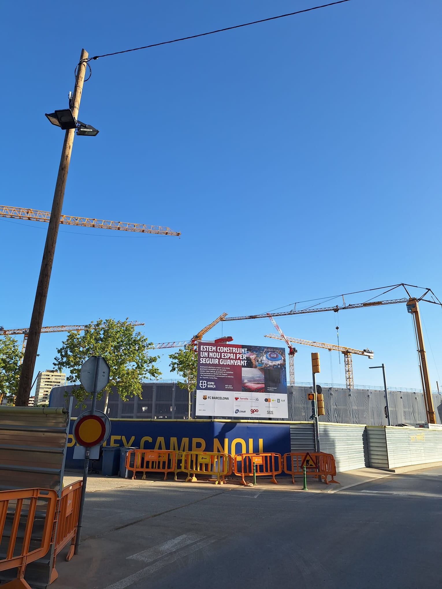 Fa uns dies, els veïns van arribar a un acord amb el Futbol Club Barcelona, de forma que ara les obres es fan de les vuit del matí a les dotze de la nit. Però a partir de les vuit de la tarda no es pot fer soroll ni treballs que impliquin il·luminació. Per tant, en aquest horari només es poden fer feines interiors. Els dissabtes també es podran fer obres, amb les mateixes condicions, però a partir de les deu del matí.
