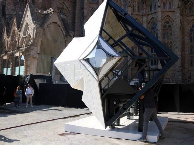 Fragment del prototip de la creu que coronarà la torre de Jesucrist de la Sagrada Família, concretament, la meitat d’un braç de la creu, que es trobarà exposat al pati de materials
