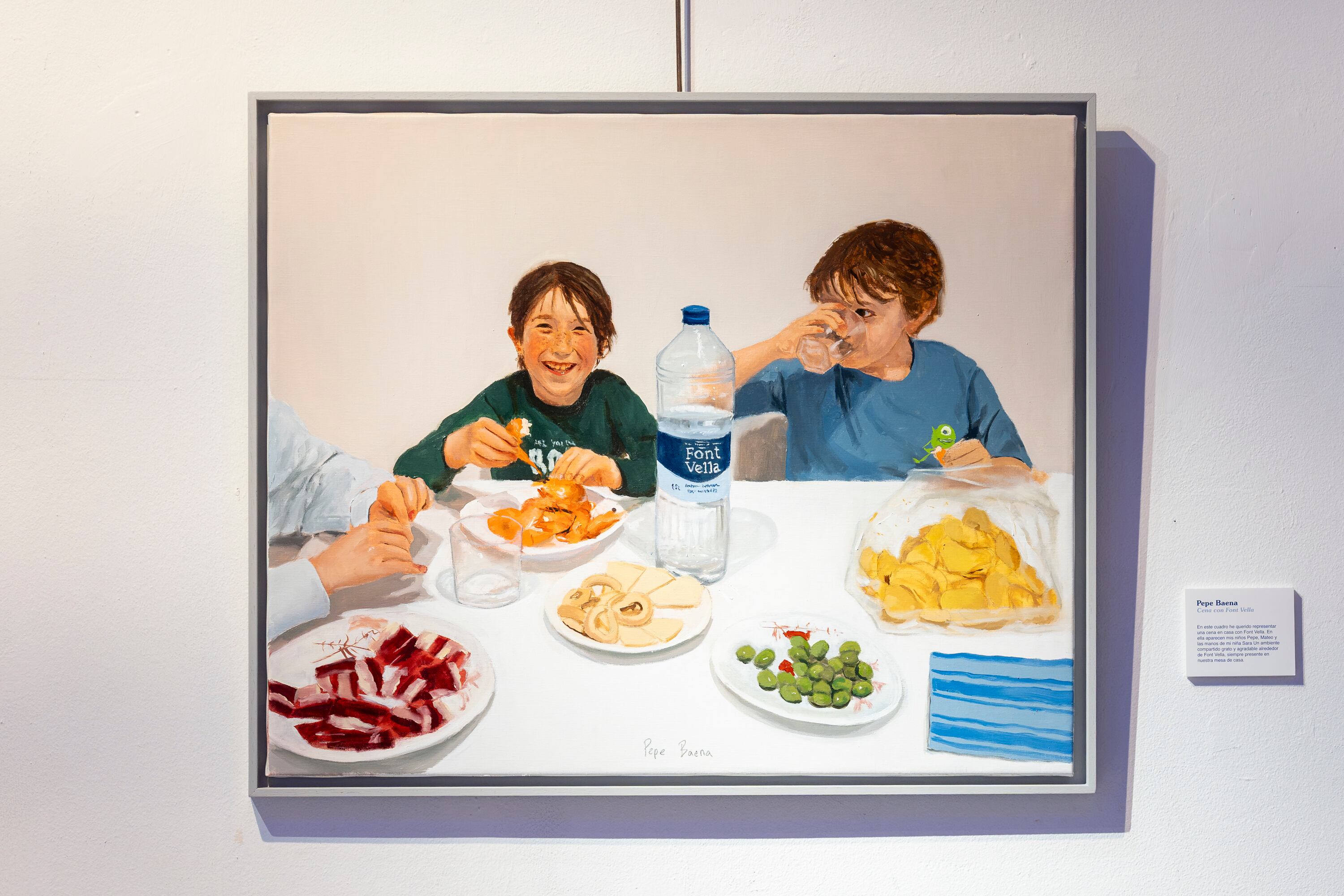 La conexión emocional continúa con ‘Cena con Font Vella’ del pintor Pepe Baena, una escena costumbrista que representa la intimidad de una cena familiar con sus hijos Pepe, Mateo y Sara, capturada con la maestría de uno de los referentes del realismo español. El estudio creativo Eating Patterns aporta ‘Entre bocados y palabras’, una pieza que transforma la comida cuando deja de ser una acción consciente y se convierte en parte del ritmo natural de la conversación. Los Bravú, el dúo artístico formado por Dea Gómez y Diego Omil, reinterpretan el bodegón clásico con ‘Mesa de la abundancia’, exaltando la riqueza mediterránea y reinterpreta el bodegón clásico con un enfoque contemporáneo, acentuando la frescura y pureza del agua Font Vella.