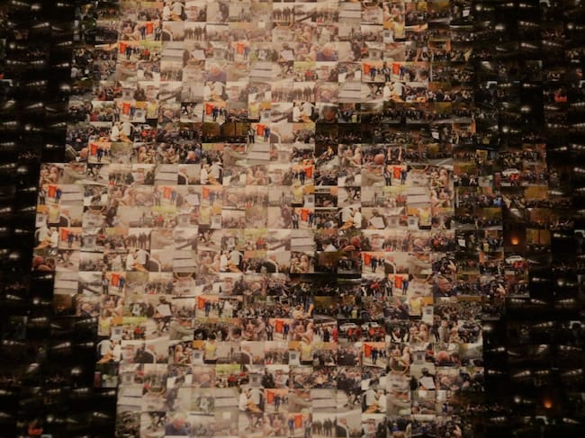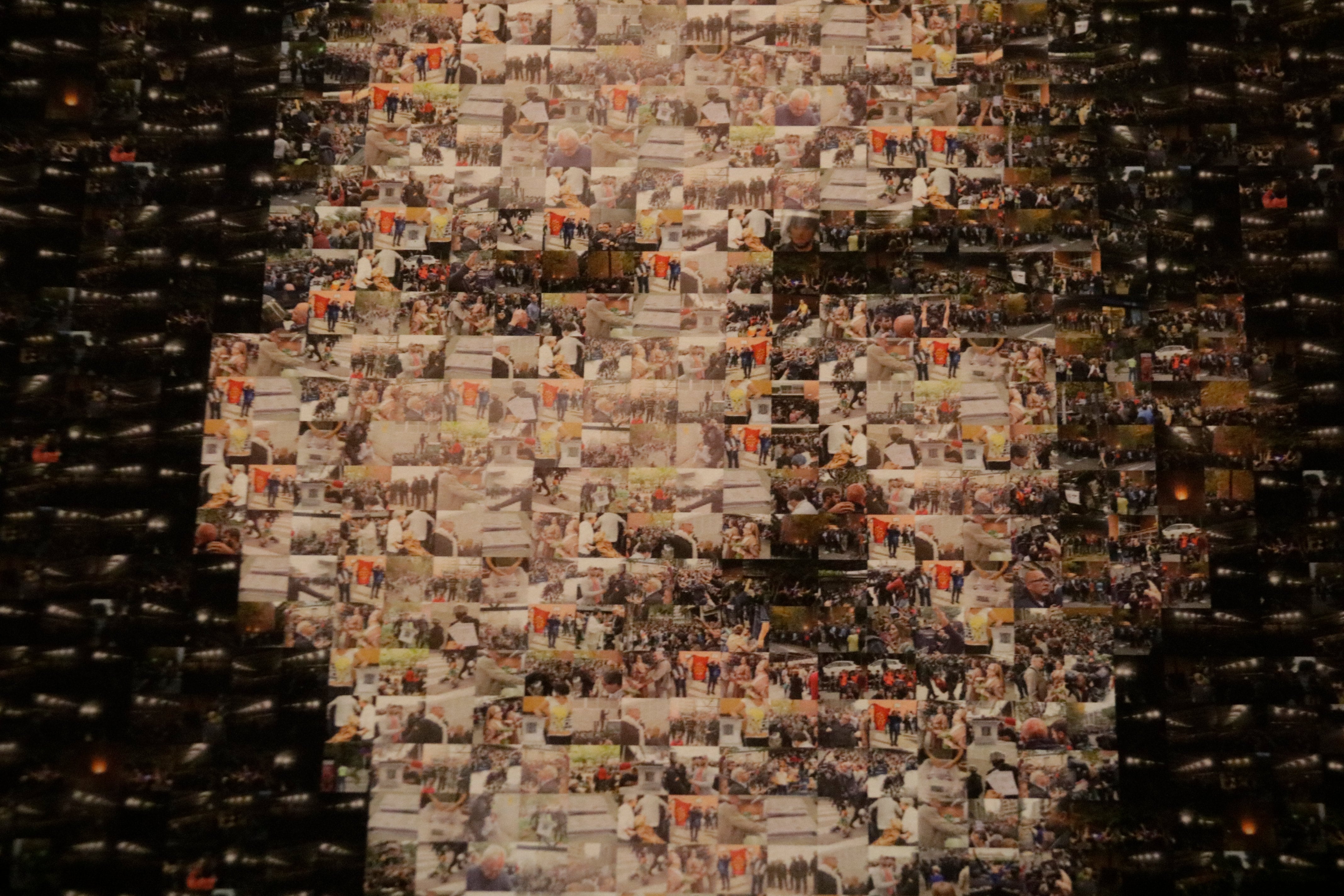 Avui acabava el termini per tornar a posar la imatge del monarca a la sala de plens després d’una resolució judicial que donava la raó a VOX. El mosaic s'ha fet amb imatges cedides per fotògrafs gironins. Des de l'Ajuntament han explicat que han treballat amb més de 300 imatges.