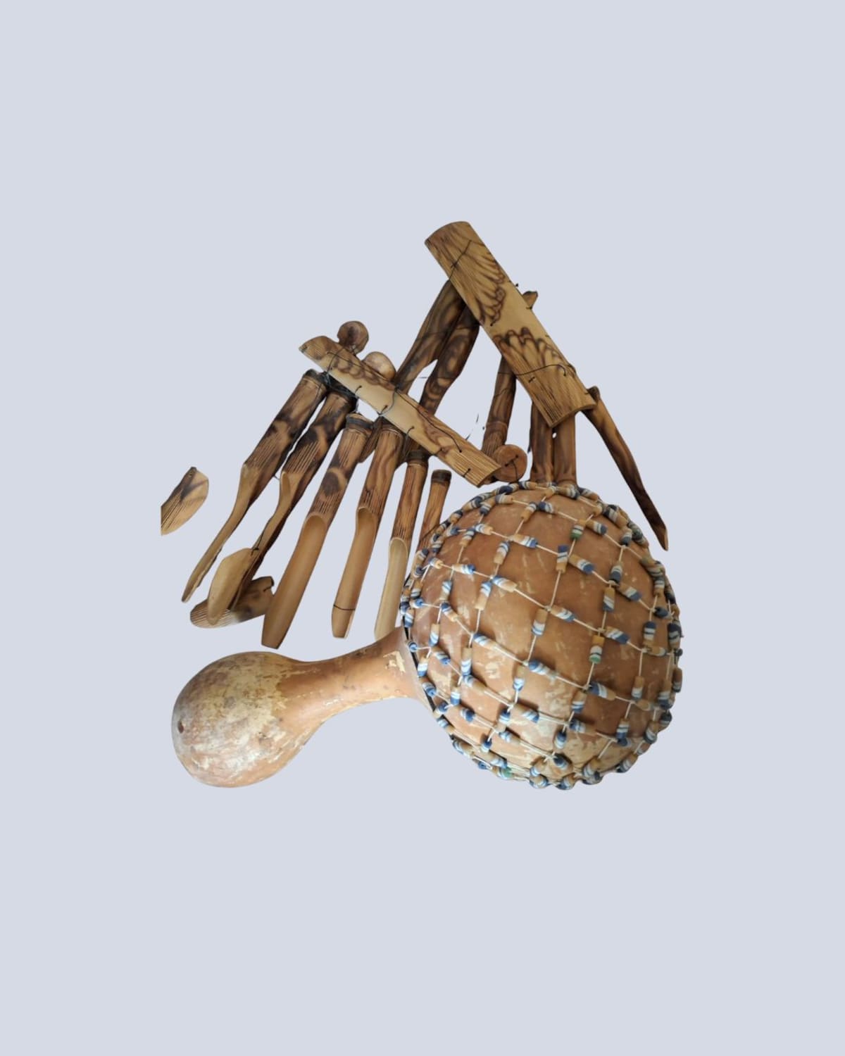 Instruments de percussió i una armilla de la seva gira.