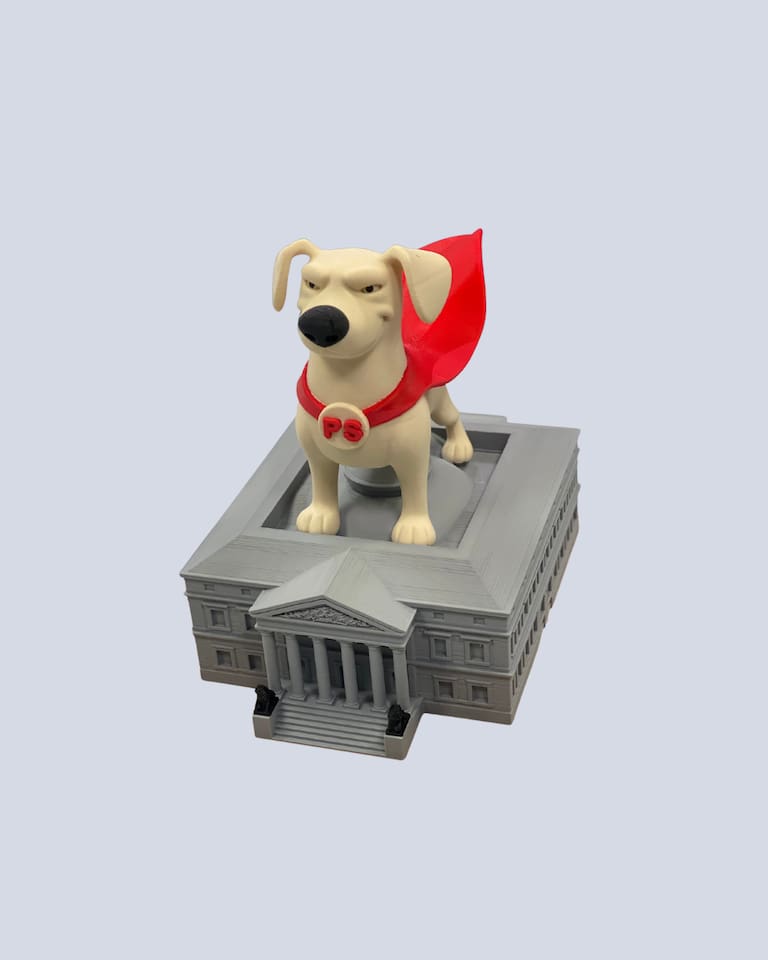 Reproducció 3D d’un ‘Perro Sanxe’ sobre el Congrès dels Diputats.